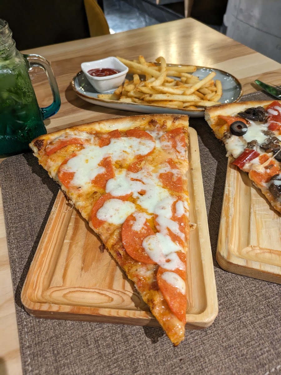 The heart of the menu at Little Italy American Pizza lies in their signature pizzas. The Pizza Margherita is an all-time favorite, offering a simple yet flavorful experience with fresh mozzarella, tomatoes, and a sprinkle of basil. If you're in the mood for something with a bit more kick, the Pepperoni Slice is an excellent choice, loaded with spicy pepperoni and perfectly melted cheese on a crispy crust. These classic pizza offerings are always a hit, but don’t overlook their diverse pasta options, like the indulgent Carbonara Pasta, which pairs creamy sauce with crispy bacon for a rich and savory bite.